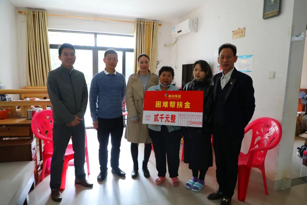 2021年1月12日,明佳集團(tuán)黨支部書記、董事長(zhǎng)陳明,副總裁羅京軒,工會(huì)主席高斐斐,副主席李萍及婦聯(lián)主席熊牡丹一行前往慰問(wèn)困難職工,為他們每人送上了2000元的幫扶金以及米、油等生活物資,還貼心地為有孩子的職工們送去一套學(xué)習(xí)桌椅。