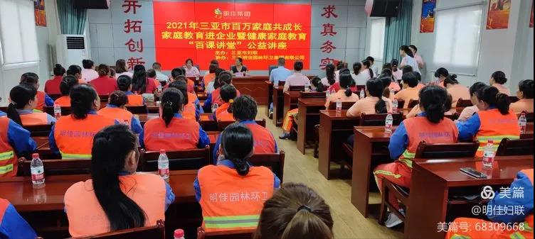 為引導(dǎo)廣大婦女帶動(dòng)家庭成員大力培育新時(shí)代家庭觀,推動(dòng)社會主義核心價(jià)值觀落細(xì)落小落實(shí)到家庭,切實(shí)落實(shí)家庭教育立德樹人的根本任務(wù),根據(jù)省婦聯(lián)“家家幸福安康工程”部署,結(jié)合“我為婦女群眾辦實(shí)事”實(shí)踐活動(dòng)。2021年7月20日下午15時(shí)30分,由市婦聯(lián)主辦、明佳婦聯(lián)協(xié)辦的2021年三亞市百萬家庭共成長家庭教育進(jìn)企業(yè)暨健康家庭教育“百課講堂”公益培訓(xùn)課在明佳三樓會議室成功舉行,培訓(xùn)內(nèi)容為家庭教育知識和女性健康知識,明佳集團(tuán)80余名職工參加了此次培訓(xùn)。
