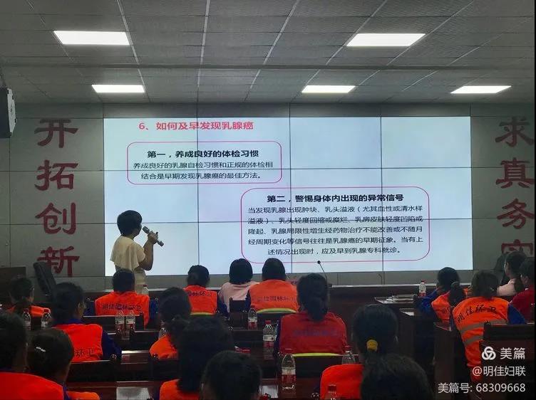 接著,由三亞市衛(wèi)生健康服務(wù)中心羅英媚醫(yī)師講解女性健康知識。課上羅醫(yī)師分別介紹了女性生理知識,如何科學(xué)預(yù)防、及早發(fā)現(xiàn)乳腺癌及宮頸癌,號召大家定期做醫(yī)學(xué)檢查,并隨時(shí)自我檢查,做好疾病預(yù)防。